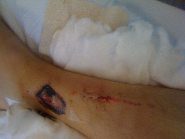 (The big cut is where my bone stuck out and where the surgeons stuck the two pieces together, and the lower one is for pins.)
