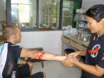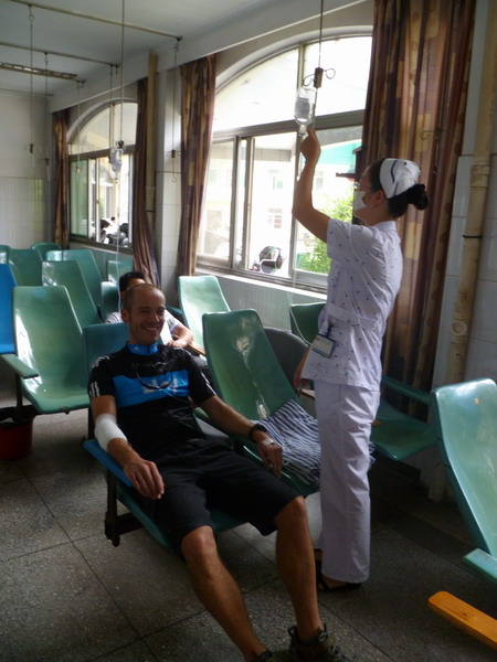 I’ve attached a few photos of an english friend who got a deep gash on his forearm this weekend. We spent the morning getting him patched up, the chinese doctors are far from gentle and were pulling it open to clean it up, it was right to the bone. He had about 7 stitches and the doctor looked like he was stitching leather, he was so heavy handed! All without any anaesthetic or painkiller, poor guy.