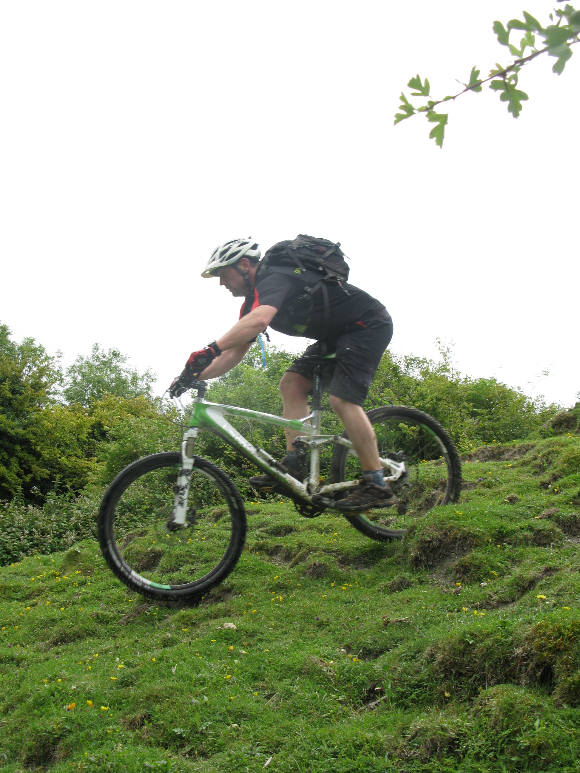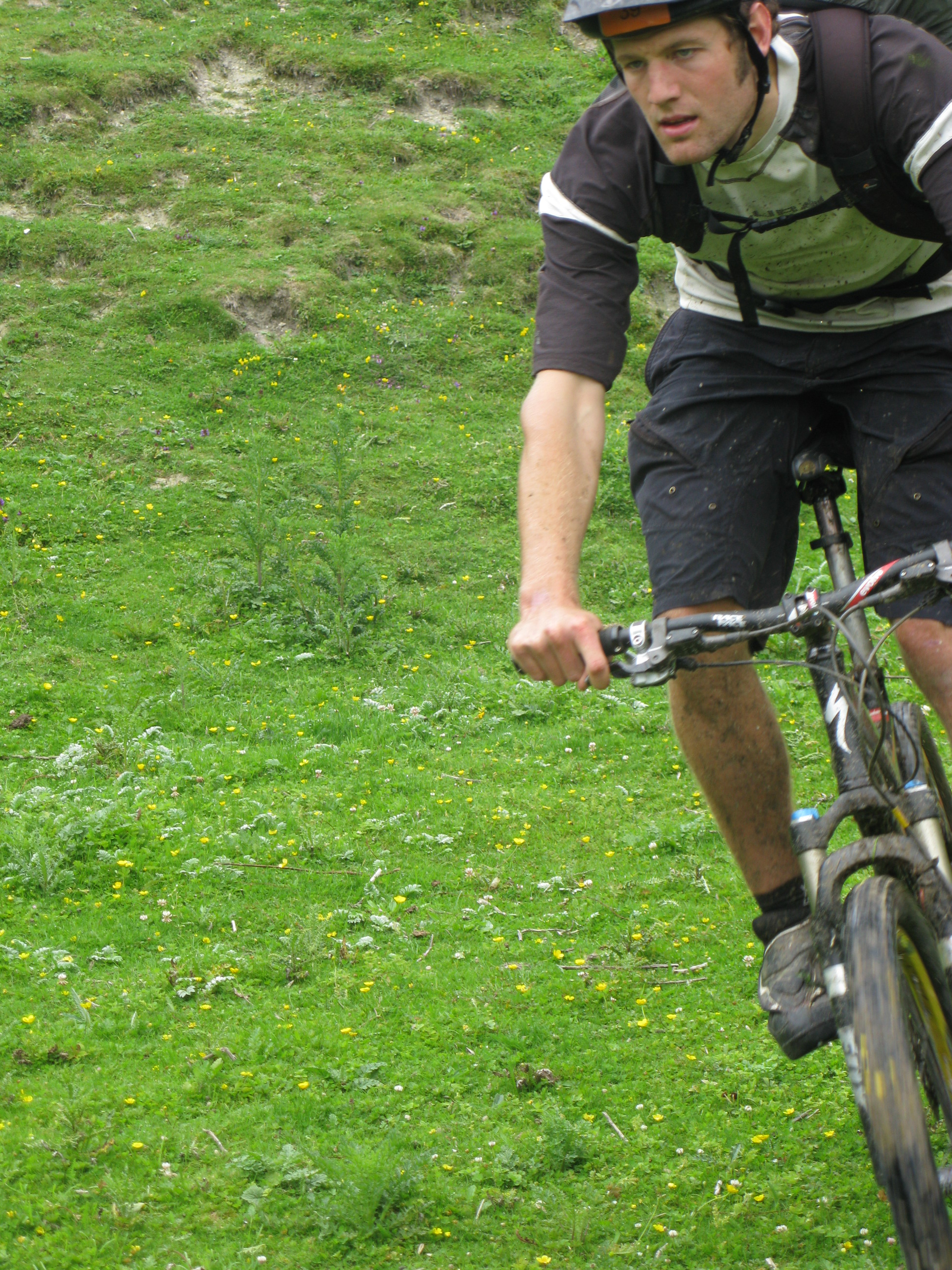 A rooty climb followed with me behind Matt when he took the Torvill and Dean line. My High Rollers may be slow but those tyres and our roots were not a good combination however all credit to him catching big slides time after time on an unfamiliar test bike. Bike seemed good though.