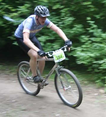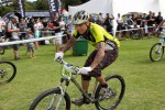 I volunteered to do the out lap, and had a pretty good one. after starting fairly far back on the grid I gave it some welly up the grass climb and managed to pass lots of folk presumably saving themselves for the rest of the hill. The rest of the first lap was spent in a fair amount of pain, but I managed to go fast through the singletrack and gain some more places. Lost a few places when I managed a painful cartwheel going up that nasty singletrack uphill on the other side of the road getting my front wheel caught in the roots (witnessed by Paul Sydney Street). I recovered from my eye-watering collision with my unforgiving square top-tube enough to enjoy the rest of my lap, popping back out into the arena in 40.33, rather surprising Tad, who wasn’t ready at the changeover point.