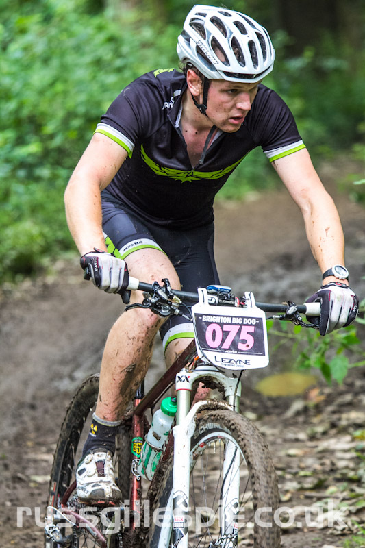 I arrived in Brighton friday afternoon, and rode a practice lap with my good friend Ronnie, from the Brighton Mountain Bike Club, he has always supported my racing and encouraged me to set my sights higher than I imagined I could. The practice lap was slippery and slow going, so my nerves were on edge and I was dreading another potentially boggy race! I’d chosen to race geared for the first time in years due to the lack of single speed class, I must say a big thanks to Scott Swalling for lending me the geared wheel, I would have struggled on the wet root sections if I’d ridden single speed.