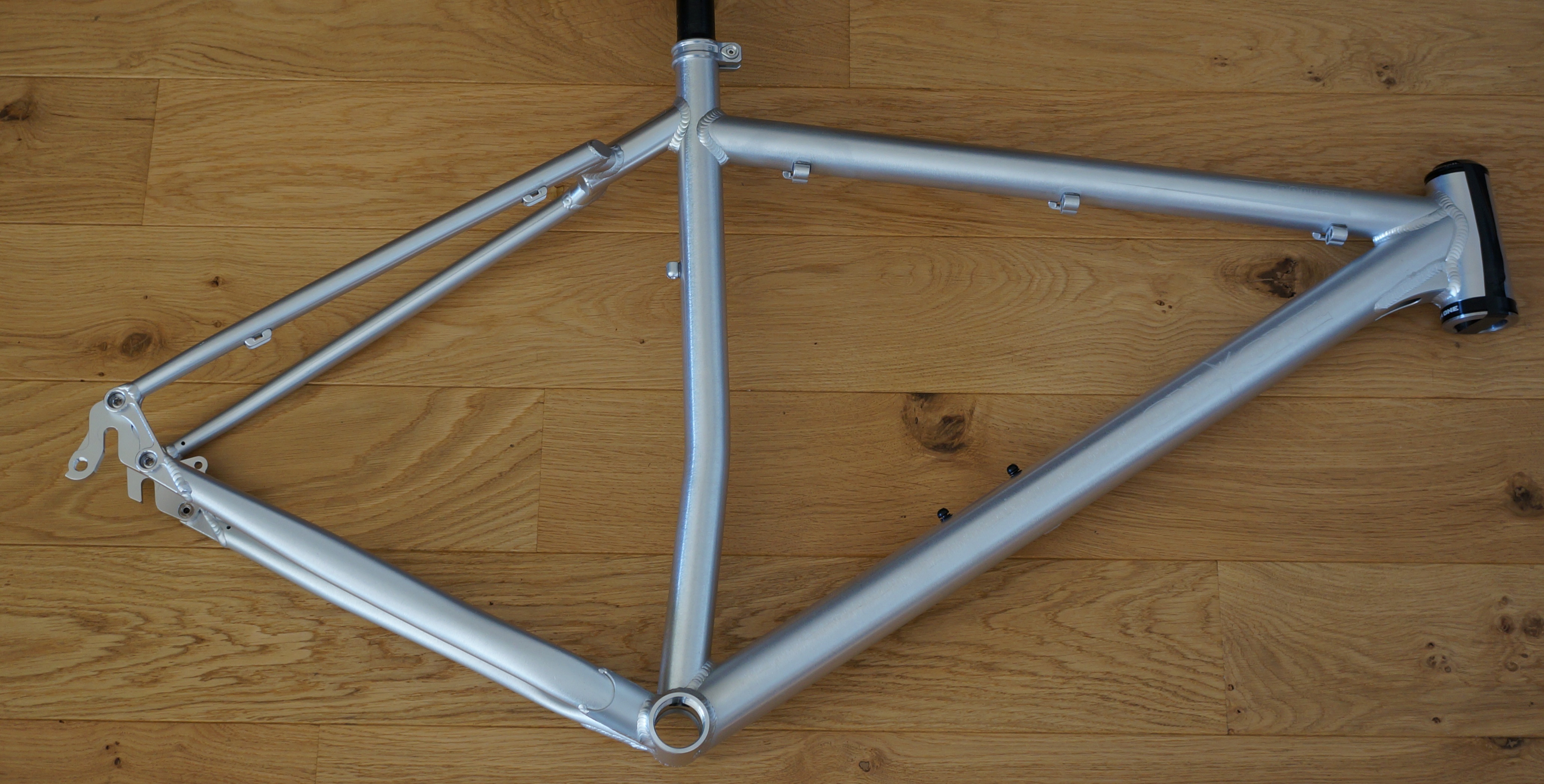 I was after a reasonably priced 29er hardtail which I could cobble together with old parts and then use for cross-Downs duties and as a winter hack.  The official excuse for a new bike – if I needed one – was to use it for commuting.  If I could end up with something that would be fun on the trails at the same time, all the better.  Having never ridden big wheels on a mountain bike before I spent a fair bit of time wondering about the impact of different geometries and considering what to look out for to give a good ride.  With advice from a certain Brighton MTB member I focused on thinking about the ‘right’ combination of head angle, chainstay length and bottom bracket height, along with sufficient mud clearance for Stanmer in winter and the right mix of components to balance weight against cost.